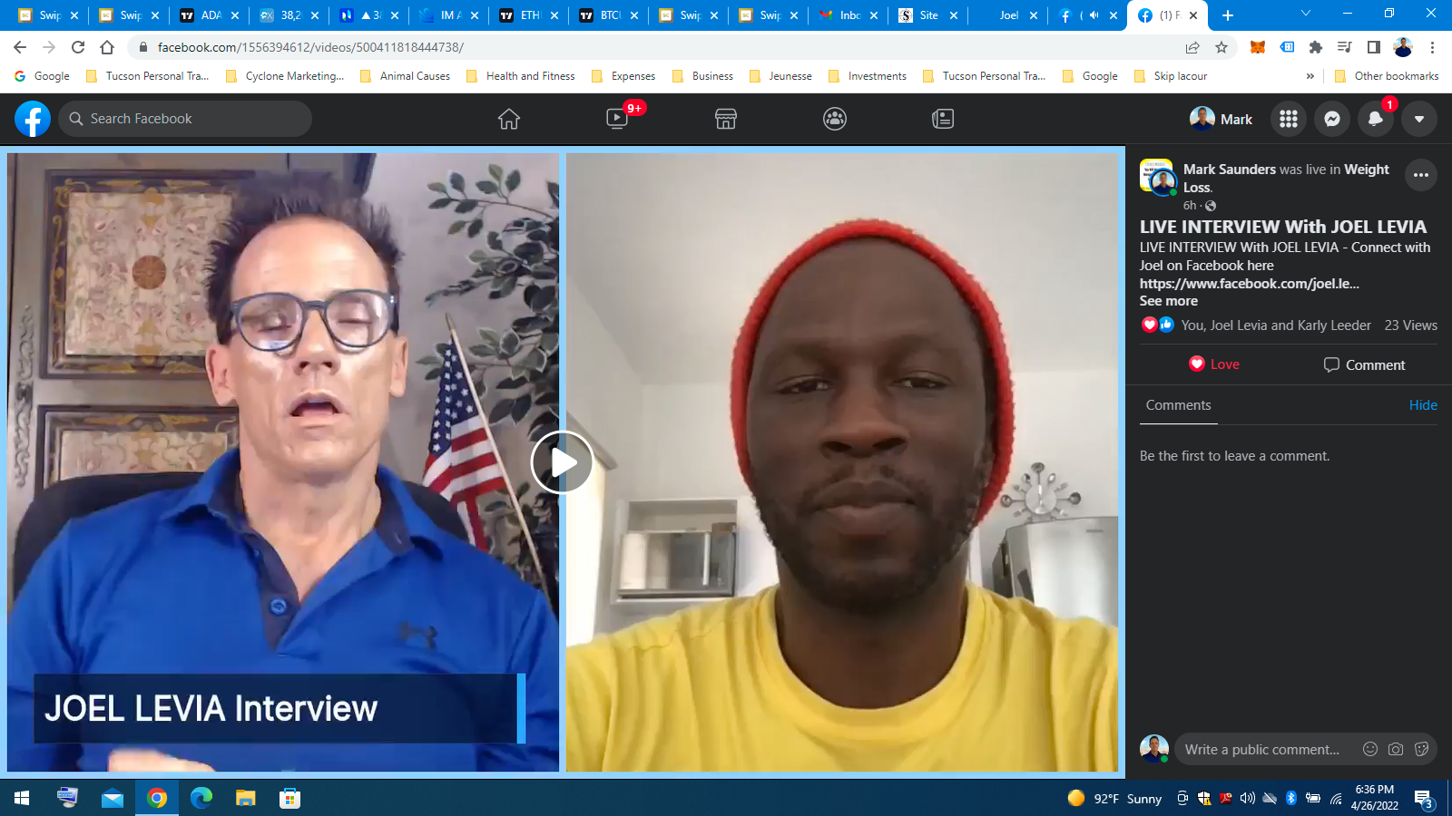 Click below to watch live interview with Joel https://www.facebook.com/1556394612/videos/500411818444738/